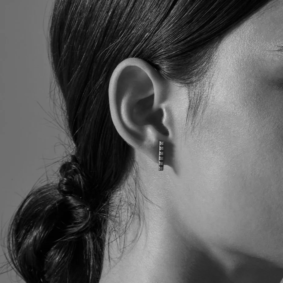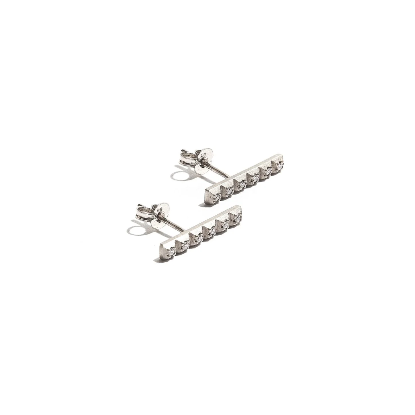 White gold Diamond Line Earrings. Elegant stud earrings, each set with six brilliant cut diamonds.