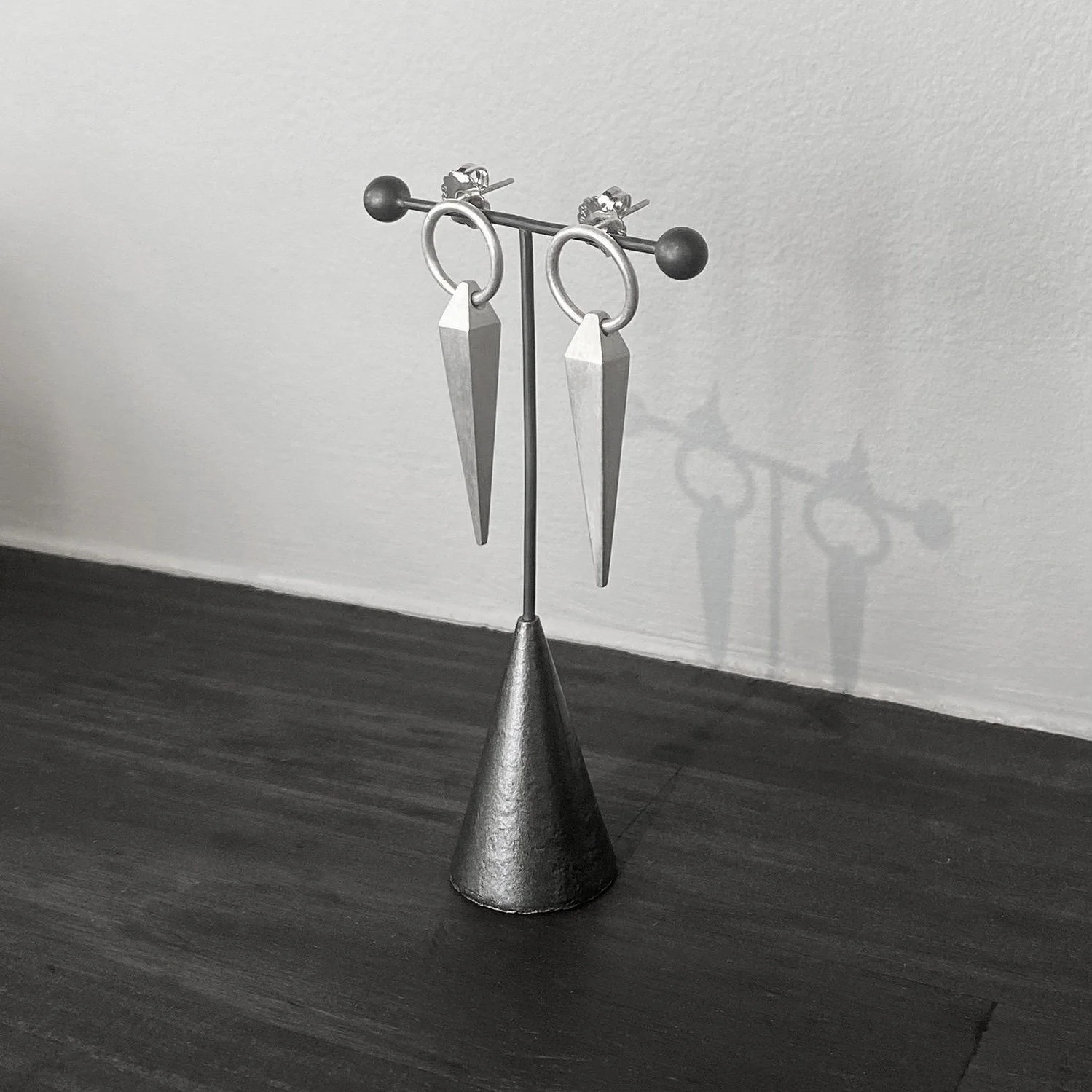 Limited edition Br2 Earring Stand from the Diatomic Series by Emma Jane Donald. Originally designed for our showroom cabinets, this piece can also be used in the home on a vanity or shelf. An effective way to display your favourite jewellery, holding a variety of hook, post and butterfly back earrings. Pictured with Plumb Line Earrings (sold separately).