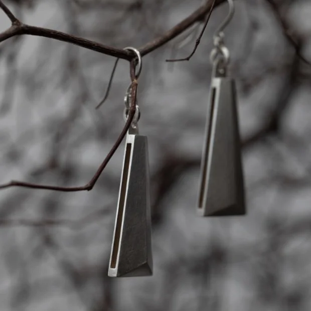 Lightweight sterling silver Blade Earrings. Worn with blackened Micro Pyramid Stud Earrings.