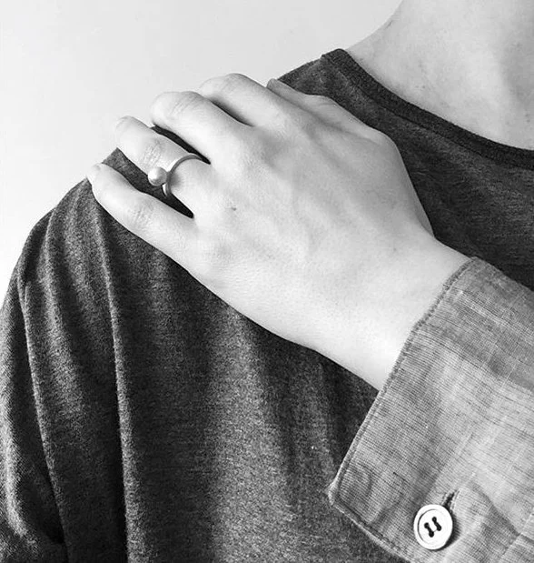 Solid sterling silver single sphere ring. Sphere diameter 7.5mm.